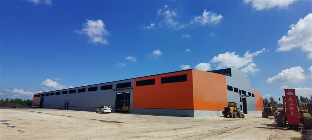 兩棟總建筑面積為16506.15平米,跨度為66.12米,采用輕型門式鋼架體系,主體結構采用栓接,用鋼量近1000噸,墻面采用聚氨酯封邊巖棉保溫復合板,屋面采用雙100mm厚玻璃絲棉保溫復合板,具有裝飾、保溫、隔熱、隔聲、防火、吸音等性能。