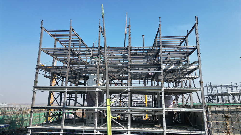 單體建筑面積:7624.37m,建筑高度31.72米,主體為7層結(jié)構(gòu),含鋼量近700噸,采用鋼框架,栓接結(jié)構(gòu),柱為箱型鋼柱,梁為H型鋼梁,每層平臺上設(shè)有多個設(shè)備洞口,里面設(shè)備多,加工工藝復(fù)雜,施工多專業(yè)交叉作業(yè),工期緊,需各專業(yè)高度配合,施工難度大,需打造成高難度、高精度、高標(biāo)準(zhǔn)工程。