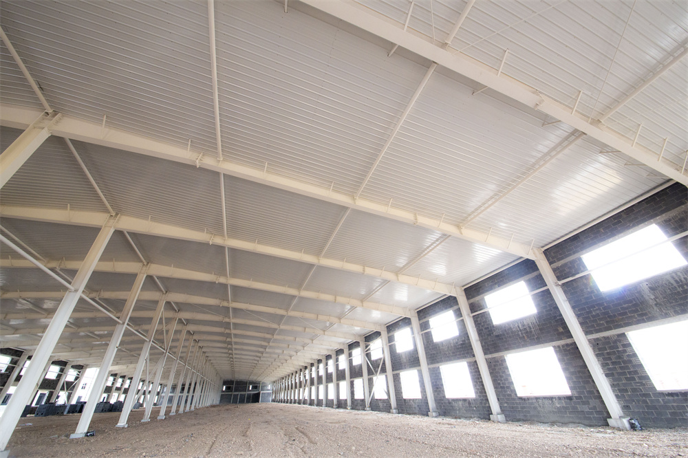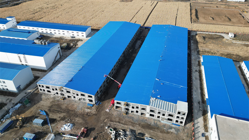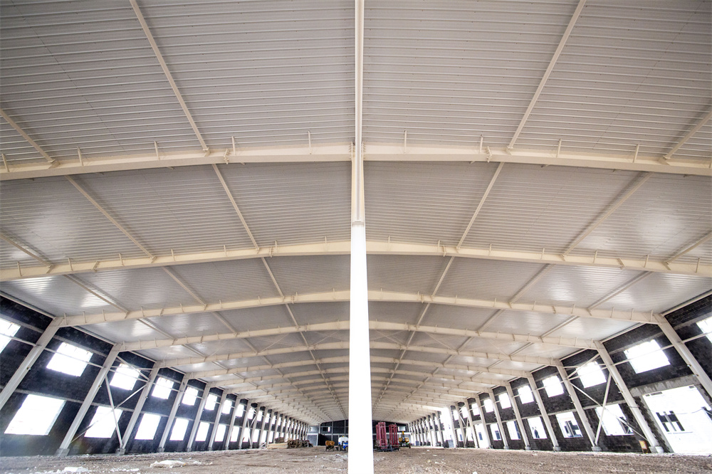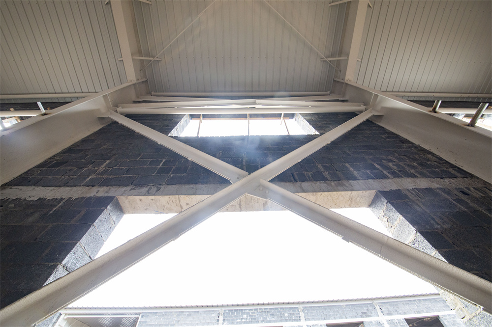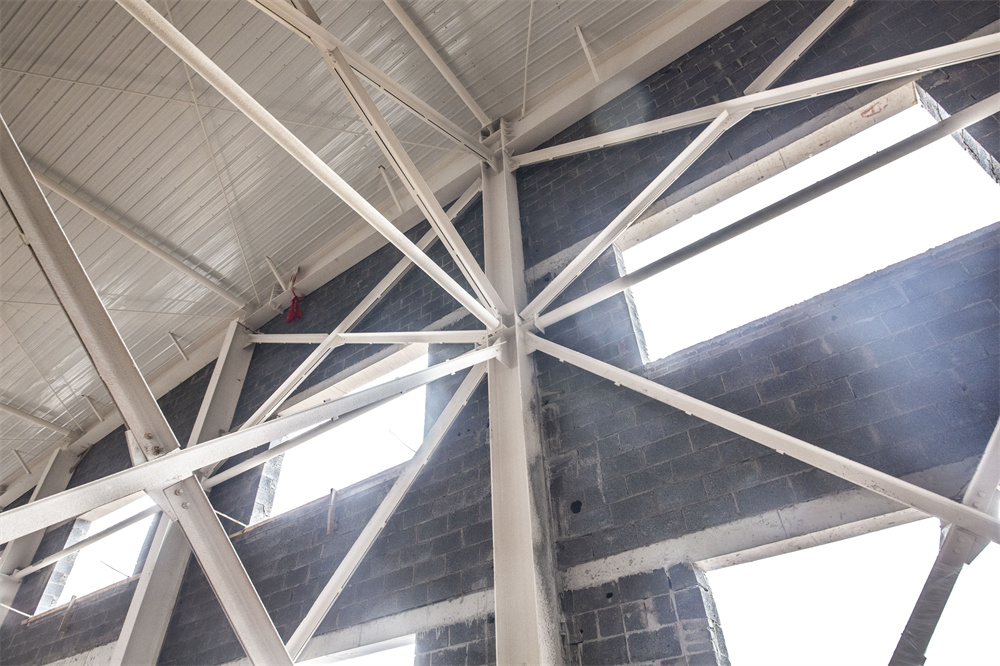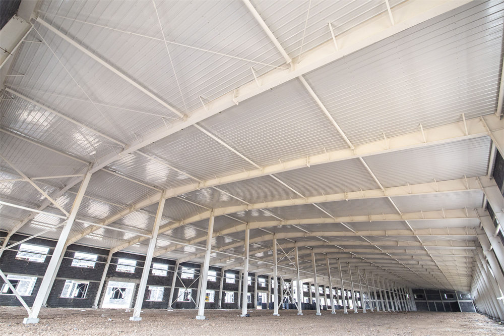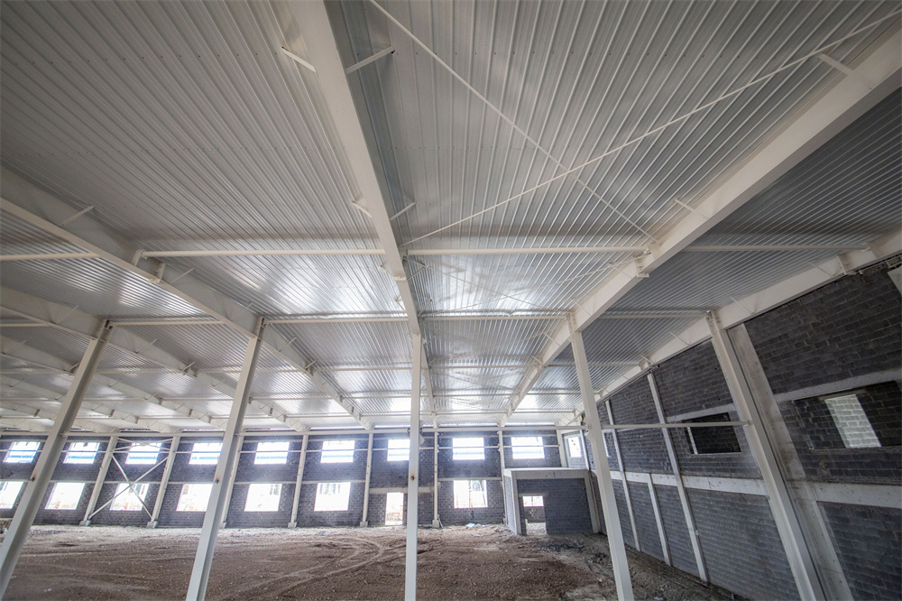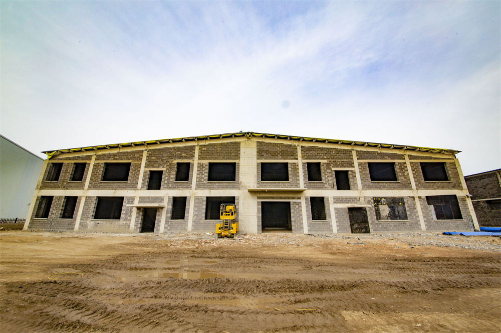 項目特點(diǎn):本工程為共計兩棟單體1-廠房、2-廠房。廠房長度159.3m、寬度46m、檐口高度8.1m。局部二層為混凝土結(jié)構(gòu)。室內(nèi)外墻體均為土建墻體,屋面保溫為雙層75mm厚玻璃絲綿現(xiàn)場復(fù)合板,屋面外板為820型角馳板。室內(nèi)屋面懸掛噴淋系統(tǒng),土建墻體與鋼結(jié)構(gòu)連接節(jié)點(diǎn)復(fù)雜,混凝土結(jié)構(gòu)施工與鋼結(jié)構(gòu)施工交叉作業(yè),增加施工難度。