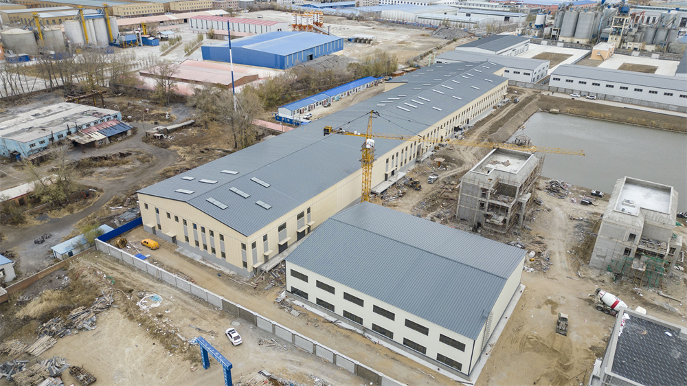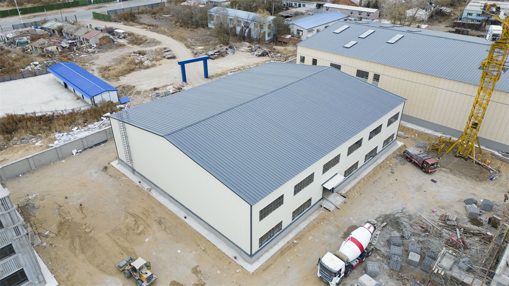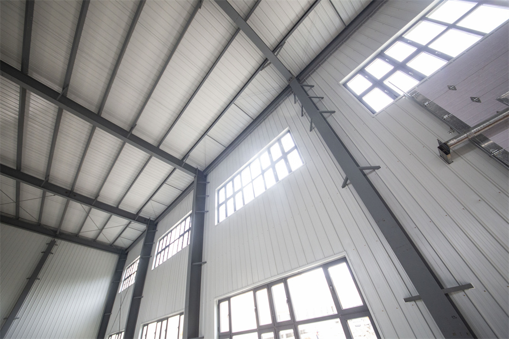 單個(gè)工程總建筑面積為:10077㎡,室外設(shè)計(jì)地面*其口與屋脊的平均高度為13.3米,墻面采用砌體結(jié)構(gòu),屋面采用輕鋼屋架結(jié)構(gòu),結(jié)構(gòu)為高低跨,不規(guī)則形狀,加工構(gòu)件種類多,對安裝精度要求高,屋面維護(hù)為150厚巖棉復(fù)合壓型鋼板坡屋面,設(shè)有多個(gè)采光帶,屋面單玻長,板重施工難度大,防水要求高。